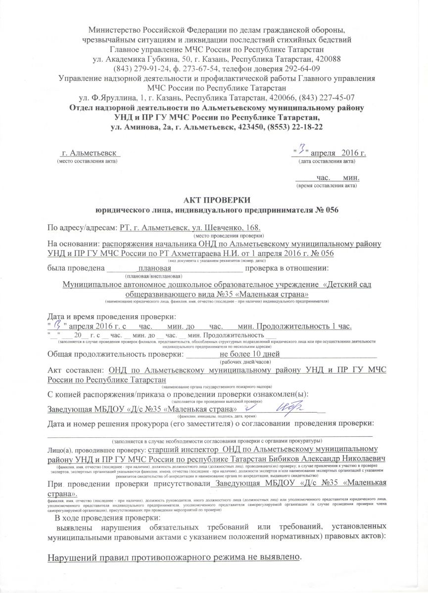 Предписание УНД и ПР ГУ МЧС + отчет об исполнении