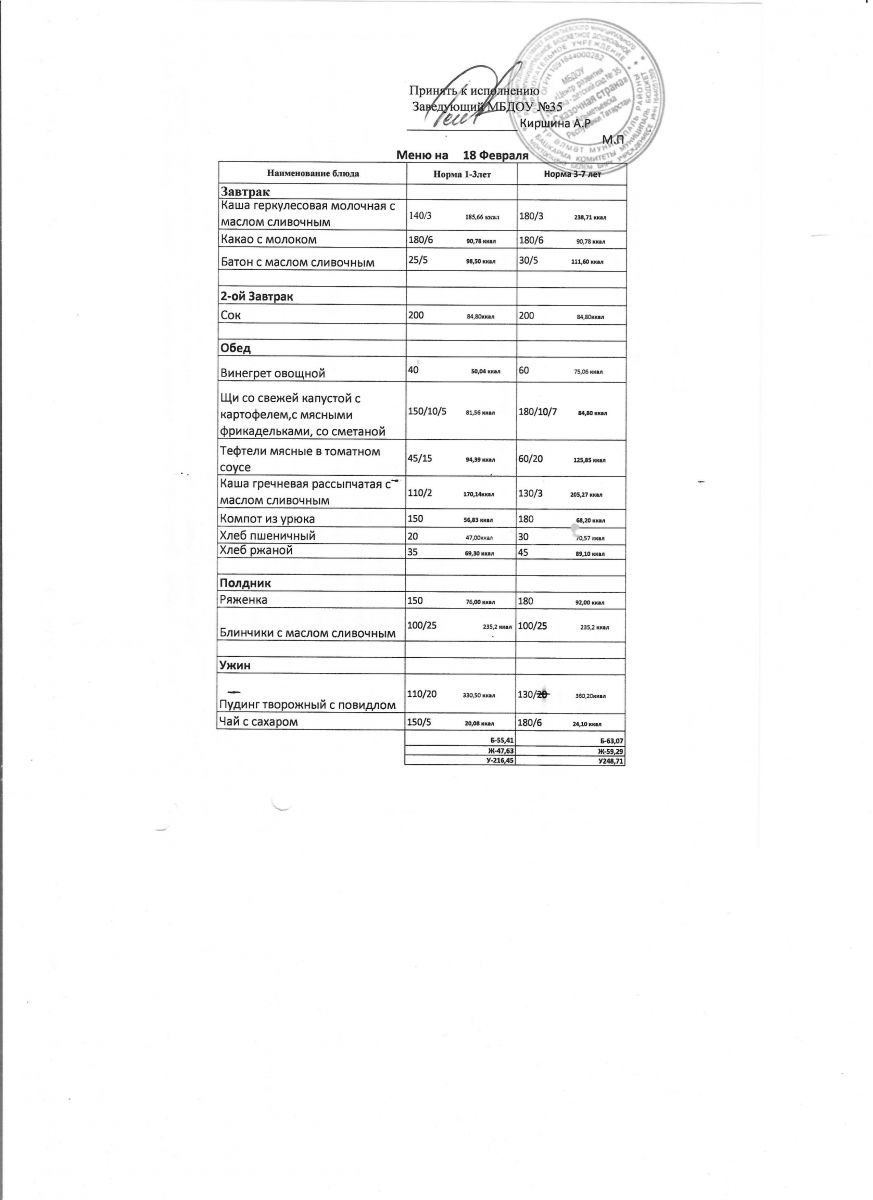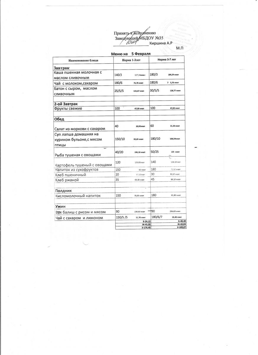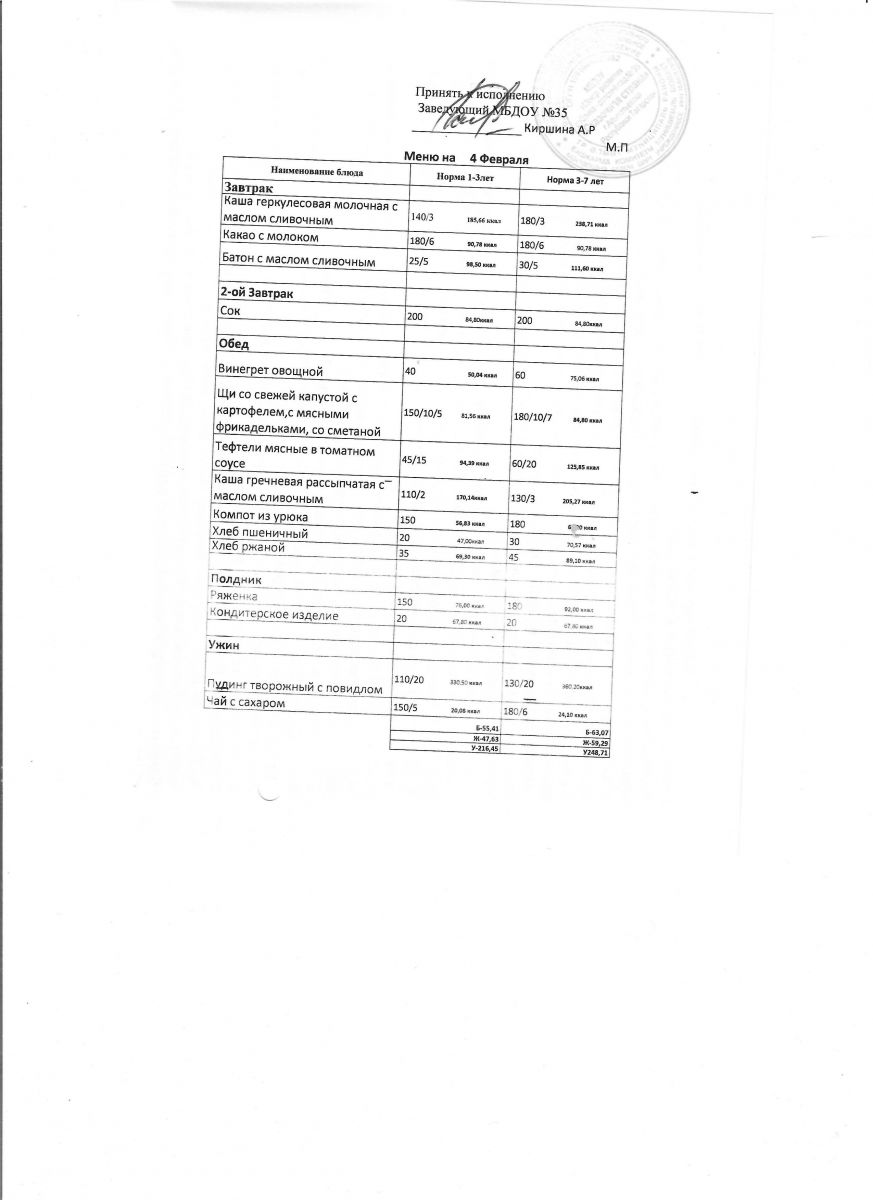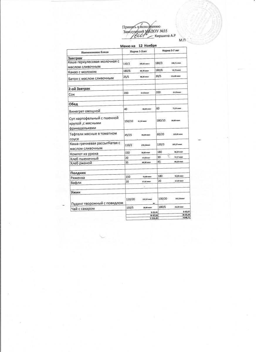 Диетическое питание в МБДОУ "ЦРР-д/с №35 "Сказочная страна" отсутствует