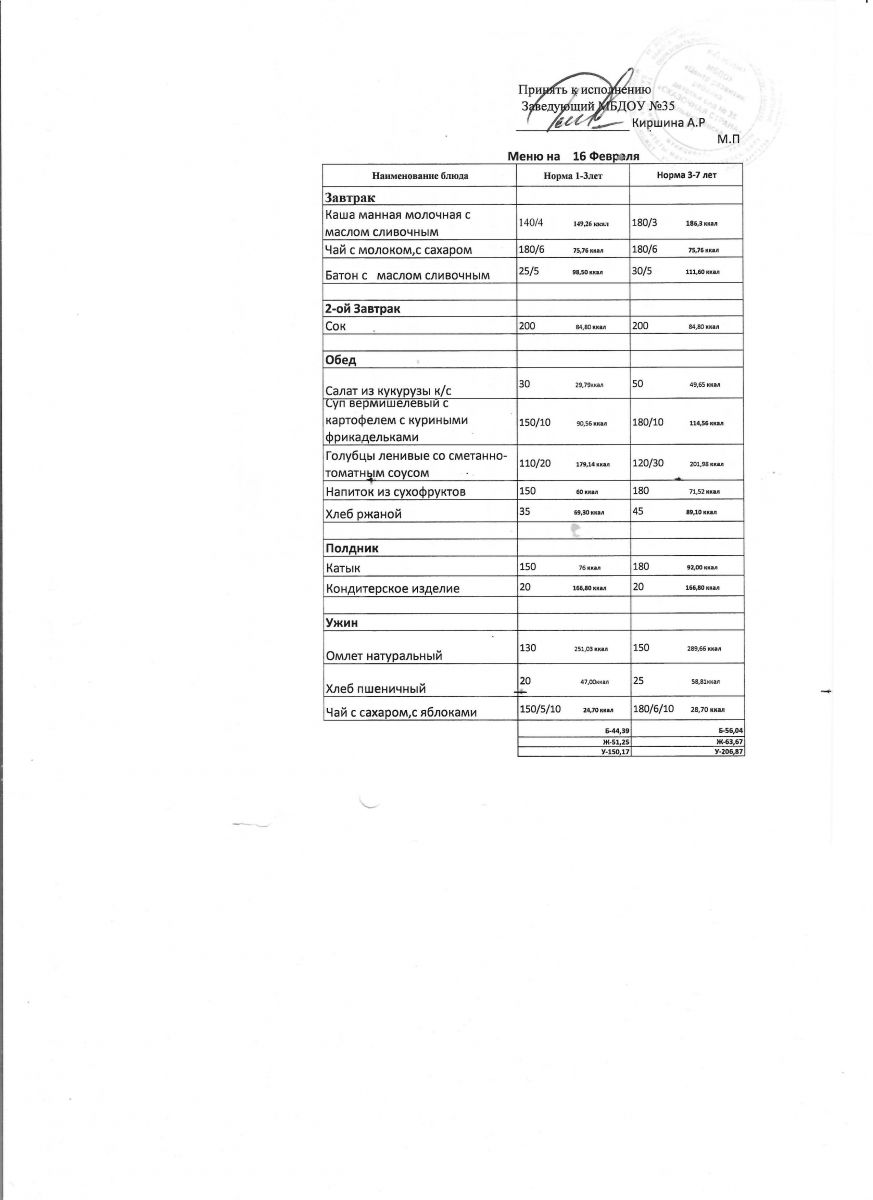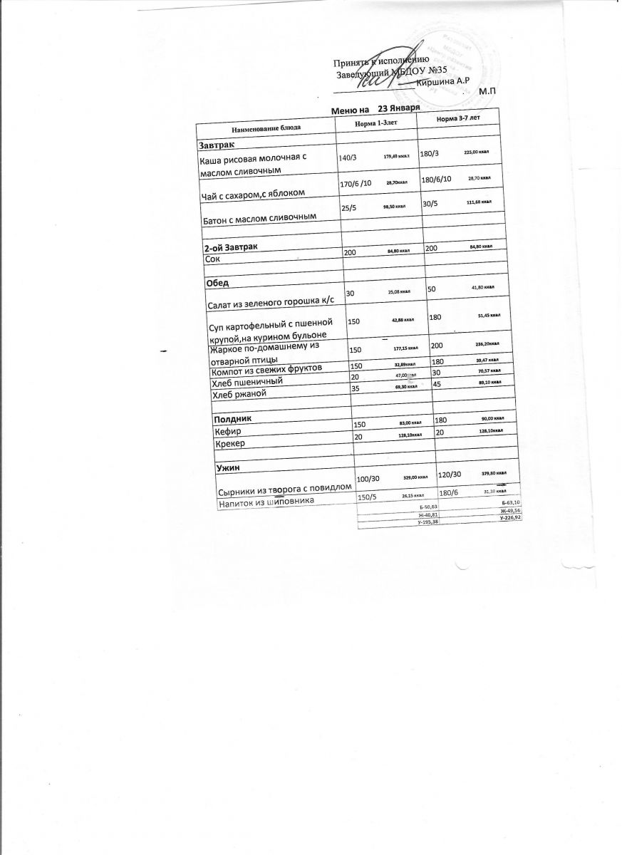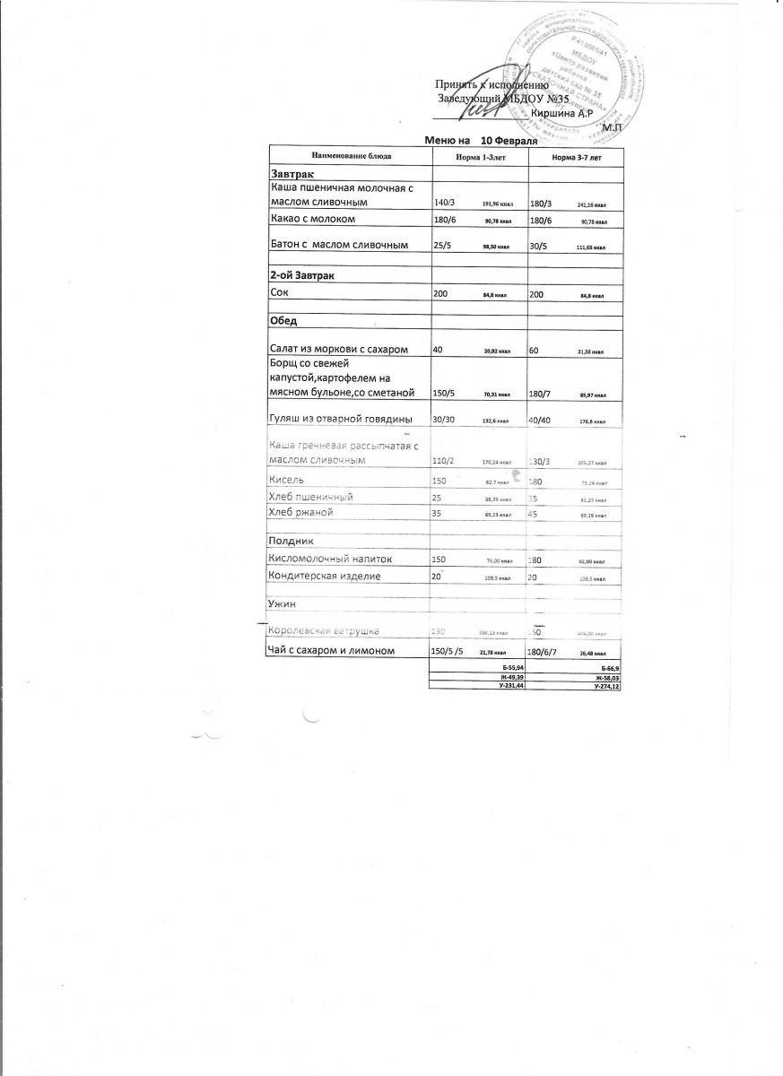 Диетическое питание в МБДОУ "ЦРР-д/с №35 "Сказочная страна" отсутствует