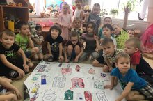 Цель акции: повысить настроения детей и взрослых в детском саду на начало дня. Родителям и педагогам, а также детям предлагалось выразить свое настроение при помощи цветных кружочков. В холле на первом этаже было вывезено солнышко. Родители, педагоги и дети наклеивали на солнышко разноцветные кружочки.