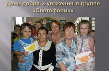 В день добра и уважения дети группы "Светофорик" подарили своим бабушкам и дедушкам подарки, изготовленные своими руками. Воспитатель Чехонина Ирина Ивановна вместе с ребятами поздравили их и поблагодарили за любовьи заботуВ волосах – серебряные нити,