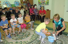 Хорошие результаты обучения появляются лишь тогда, когда согласуются усилия педагогов и родителей. Вовлечение родителей в воспитательно-образовательный процесс является обязательным условием в решении поставленных нами задач. Чтобы родители могли поближе познакомиться как дети обучаются татарскому языку в условиях детского сада, мы их пригласили в детский сад. Родители групп № 4, 42, 39, 33, 46, 47 познакомились с целями и задачами на новый учебный год по обучению детей татарскому и родному языкам. Они ознакомились с татарским кабинетом, им понравилось, что кабинет полностью обеспечен методическим материалом инновационного характера в соответствии с принципами реализации УМК, весь материал мобилен. А родители группы № 6 «Радуга» посмотрели интересное занятие по татарскому языку, по проекту: «Минем өем». Дети играли в разные игры, Мияу и Акбай помогали запоминать татарские слова. Вместе с папами и мамами посмотрели анимационный сюжет. Дети не утомились, они раскрепощены, сохраняют заинтересованность до конца занятия. Благодаря комфортным условиям, созданным в татарском кабинете, интенсивно происходит усвоение татарской речи. Все происходит через игру. Вот так, играя, дети учат языки!