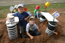 Неделя, посвящённая очень нужной и благородной профессии строителя, началась с беседы с детьми на тему «Дом, в котором я живу», в ходе которой уточнили представление детей о профессии строителя, говорили о том, какими профессиональными качествами он должен обладать, в каких тяжёлых условиях ему приходится работать и каких масштабов достигла современные архитектура и строительство. На прогулках наблюдали и рассматривали многоэтажные дома, окружающие наше дошкольное учреждение; упражнялись в счёте, считая этажи; обращали внимание на цвет, форму окон, балконов, крыш, и материалы, из которых они изготовлены. В ходе экспериментальной деятельности на тему «Из чего построить дом?» закрепили знания о свойствах веществ (камень, дерево, песок). Свои интересные задумки и фантазийные проекты города будущего воплотили наши юные художники в рисунках на тему «Город моей мечты».Из цветной бумаги, подручного и бросового материалов ребята моделировали плоскостной макет улицы, а из полосок пластика - дом и другие постройки. Воспитанники группы «Пчёлки» совершили небольшой экскурс в историю нашего нефтяного города «Мой родной Альметьевск», больше узнали о важных профессиях нефтяника и строителя, рассматривали альбом с фотографиями Альметьевска, узнавая знакомые места и объекты города. Необычным делом для ребят стало объёмное моделирование из пластиковых бутылок «Бутылочный городок». В ходе работы над постройкой у детей развивались фантазия, творческое воображение, навыки моделирования и конструирования. С особым восторгом мальчики рассматривали иллюстрации современной строительной техники, которая облегчает ежедневный тяжёлый труд тысяч строителей. С увлечением ребята участвовали в конкурсе «Юный архитектор». Особенно удались постройки «Маяк» и «Крепость с четырьмя сторожевыми башнями». Завершая неделю, провели заочную экскурсию с демонстрацией слайдов презентации «Знакомые места» по проспекту Строителей, которая способствует воспитанию любви к родному городу, чувство патриотизма.