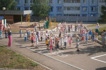 Ни один наш праздник не проходит без гостей. Вот и в этот день к детям из леса пожаловала Баба-Яга. Она принесла детям весёлые игры, шутки, прибаутки, а, главное, хорошее настроение. Дети пели, танцевали, рисовали мелом на асфальте, соревновались в ловкости и быстроте, радовались и веселились.