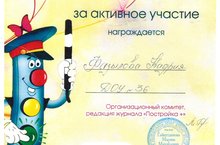 Две семьи нашего дошкольного учреждения:старшей группы "Теремок" ,воспитатель Чентаева В.Е. участвовали в городском конкурсе "Детям -чистый город с безопасным движением!" организационный комитет, редакции журнала "Постройка +" и получили Дипломы за активное участие.