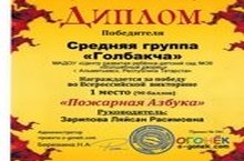 Поздравляем воспитателя татарской группы «Гөлбакча» Зарипову Ляйсан Расимовну с первым местом во Всероссийской викторине «Пожарная Азбука» и дипломом победителя.