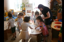 10 апреля воспитатели 2 -ой мл.группы Кашина Р.А. и Шайдуллина Ш.С. в рамках недели "Специалист" представили коллегам из других детских садов свой опыт работы по организации совместной деятельности педагога с детьми по образовательной области Познания ФЭМП на тему : "В гостях у сказки".Под руководством воспитателей малыши отправились в гости к своим сказкам :"Колобок","Теремок", "Три медьведя". Встречаясь с героями сказок дети закрепляли знания и понятия по элементарной математике:один,много, не одного. широкий,узкий,большой,маленький,сравнивали множества, составляли равенства...После просмотра мероприятия коллеги из других детских садов(15 чел.) высказали свои мнения и дали положительную и высокую оценку.
