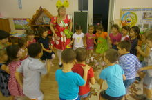 В старшую группу «Детство" пришла в гости клоунесса Ириска. Она пригласила ребят в весёлое путешествие. На волшебной полянке ребята играли, веселились, рисовали.
