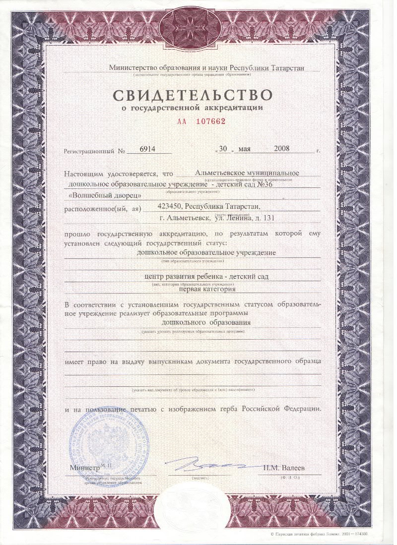Муниципальное бюджетное дошкольное образовательное учреждение "Центр развития ребенка – детский сад №36 «Волшебный дворец» г. Альметьевска"/Әлмәт шәһәре муниципаль бюджет мәктәпкәчә белем бирү учреждениесе "Баланың сәләтен үстерү үзәге - 36 нчы "Тылсымлы сарай" балалар бакчасы"