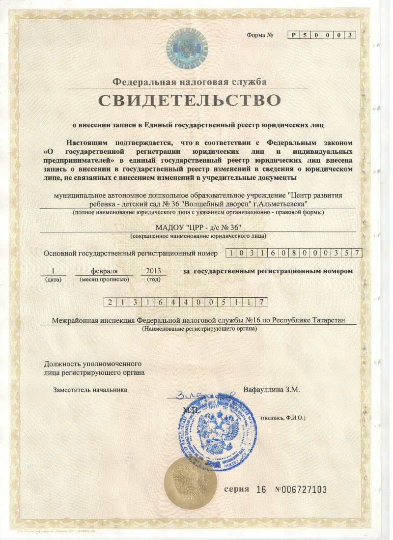 МАДОУ "ЦРР - д/с № 36 "Волшебный дворец" г. Альметьевска"