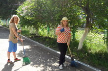Уборка территории детского сада под девизом: "У нас чистота и порядок!"
