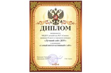 Коллектив МБДОУ №37 "Сказка" награжден Дипломом за II место в городском конкурсе "Лучший сайт ДОУ" в номинации "Самый интерактивный сайт". Поздравляем!!!