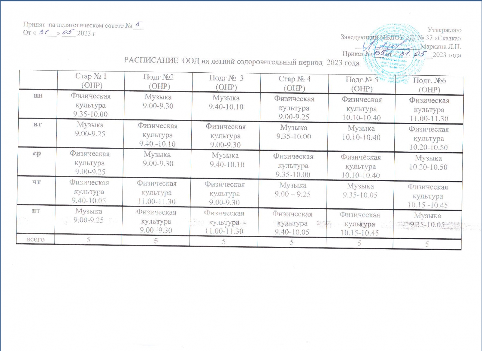 План работы МБДОУ 37 Сказка на летний оздоровительный период 2024 год