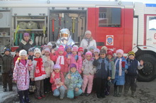 1 апреля воспитанники подготовительной группы побывали на экскурсии в Пожарной части №65. Специалисты пожарной части провели ребят по зданию, показали комнату психологической разгрузки, дежурную диспетчерскую службу и учебные классы, которые очень удивили дошкольников, ведь в их представлении пожарные – это супер-люди, которые только тушат и спасают, а учиться им совсем не обязательно. Дети задавали много вопросов об истории пожарной охраны, о профессиональной деятельности. Зрелищное действие произошло в боксах для техники. Ребятам показали предметы боевой одежды, пожарно-спасательный инвентарь, разрешили свернуть и развернуть рукава. Даже девчонкам было интересно примерить пожарную каску. В ангарах экскурсантов ожидала спецтехника. Особого внимания удостоилась 50-метровая пожарная автолестница. В заключение экскурсии ребятам рассказали о том, как вести себя в случае пожара и как не допустить его возникновения.