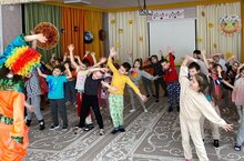 Бом и Бим, которые вместе с детьми пели, танцевали и играли. Игры, шуточные сценки, зажигательные танцы помогли сделать праздник интересным, ярким и весёлым