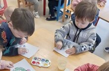 1 младшая группа №1 "Ручеек" (нетрадиционная техника - рисование ватными палочками). Создаем радостное настроение, сделав подарок Снеговику ☃. Привлечение внимания детей к тому, что ватные палочки оставляют след на бумаге.