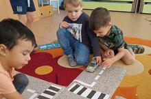 Ребята мастерят из подручных средств.Вот такой макет перекрестка получился.И это только начало