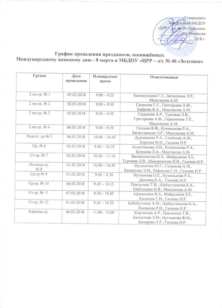 График утренников к 8 марта 15.02.2018