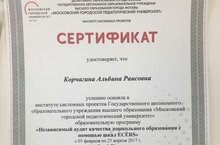 С 5 февраля по 25 апреля 2017 года педагог психолог Корчагина А.Р. прошла образовательную программу "Независимый аудит качества дошкольного образования с помощью школ ECERS.