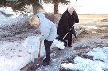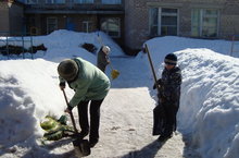 Сотрудники ДОУ принимают активное участие в убоке территории от снега.