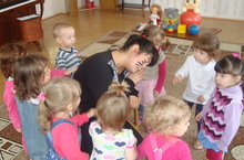 Музыкальный руководитель Нотфуллина С.Б. и воспитатель Минибаева И.Р. провели музыкальное развлечение для детей 1 младшей группы " Весёлые игрушки". Дети познакомились с названиями игрушек и их использованием в играх: куклой, неваляшкой, кубиками, пирамидкой, мячиком, машинкой, погремушкой. В гости к детям пришёл Кот Васька, вместе с которым дети поплясали, играли в игру "Тише, мыши", поиграли с погремушками, с мячиком и другими игрушками.