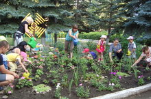 Совместная трудовая деятельность с родителей, детей и воспитателей на клумбе 18.07.2016