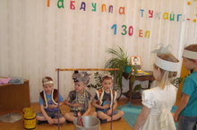 Сегодня в МБДОУ прошло мероприятие, посвящённое к 130-летию татарского поэта Габдуллы Тукая. В гости к детям пришла Шигърияз со своими друзьями - героями сказок Габдуллы Тукая: Шурале, Батыр, Водяная, Коза и Баран, Бабочка. Дети рассказали стихи великого поэта, инсценировали сказки: "Шурале", "Су анасы", "Коза и Баран".