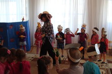 Музыкальный руководитель Нотфуллина С.Б. и воспитатель Сопина А.С. провели развлечение для детей 2 младшей группы с участием детей подготовительной группы в инсценировки сказки. Вместе с Лисичкой, Зайчиком , Волком и Медведем дети плясали, играли в игры и обыгрывали потешки. В завершении развлечения, дети получили сладкое угощение от Сказочницы и Колобка.
