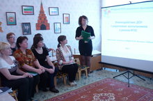 Председатель рабочей группы, воспитатель 1 кв. категории Хайбриева М.Ш. представила коллегам презентацию по проблеме взаимодействия ДОУ и семьи в рамках введения ФГОС ДОУ.