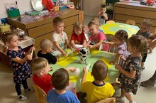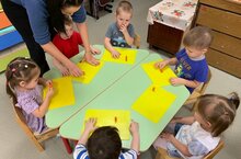 Ребята первой младшей группы "Кнопочки" на занятии по лепке познакомились с содержанием сказки "Козлятки и волк".