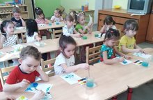 Ребята 1 младшей группы "Кнопочки" учились приёмом налепа на силуэт.
