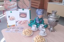 Ребята средней группы "Карамельки" познакомились с национальными костюмами, блюдами татарской кухни, кухонной утварью.