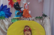 Ко Дню Смеха детям 1 мл.гр. был показан кукольный театр "Лесное приключение".Кукольный театр – одно из самых любимых зрелищ детей дошкольного возраста. Он привлекает детей своей яркостью, красочностью, динамикой. В кукольном театре дети видят знакомые и близкие игрушки: мишку, зайку, собачку, кукол и др., – только они ожили, задвигались, заговорили и стали еще привлекательнее и интереснее. Необычайность зрелища захватывает детей, переносит их в совершенно особый, увлекательный мир, где все необыкновенно, все возможно.
