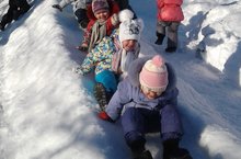 Важное место в режиме дня детского сада занимает прогулка. Зима – удивительное время года! Больше всех зиме радуются дети, ведь зимой на прогулке – раздолье для игр, забав и других развлечений – можно кататься на санках и с ледяных горок, барахтаться в сугробах, лепить снеговиков и устраивать поединки на снежках. У детей появляется еще одна забота – брать на прогулку пластмассовую лопатку и деловито стучать ею по сугробам. На прогулку! Кто быстрей? Позовем с собой друзей!
