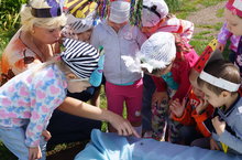 В рамках тематической недели: «Наедине с природой» самые маленькие воспитанники группы № 9 «Капельки» во время прогулки наблюдали за жизнью насекомых, внимательно рассмотрели кузнечика и муравья, уточнили знания о насекомых: об их жизни в природе, внешнем виде, отличии от других живых существ. После наблюдения дети превратились в насекомых и вместе с воспитателем играли в увлекательную подвижную игру «Мы насекомые», где дети закрепили полученные знания. Благодаря таким играм с превращениями дети получают знания о взаимосвязях в природе, познании того, что растет и живет рядом с ними.