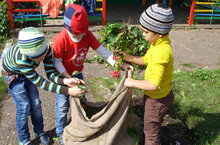 Воспитанники подготовительной к школе логопедической группы № 8 «АБВГдейка» с удовольствием наводят порядок на любимом участке – помогают воспитателю собирать опавшие листья, сухие веточки и прочий мусор. Ведь так приятно увидеть результаты своего труда!