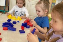 Знакомство с блоками Дьенеша совместно с детьми воспитатели начали с самой простой игры - выборка. Ребята группировали элементы по разным признакам: фигуры одинакового цвета, одного размера.