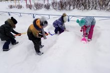 Дети группы №7 очень любят играть со снегом во время прогулок в ДОУ. Игры зимой на свежем воздухе доставляют им огромную радость , приносят неоценимую пользу их здоровью . Любимое зимнее развлечение малышей - игры со снежколепом. Дети с удовольствием сооружают разные постройки из снега , украшают их вылепленными снежколепом фигурками.