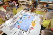 Ребятам средней группы №3 нравится играть в подвижную игру «Найди свой гараж». Дети представляют себя маленькими машинками, и под веселую музыку каждый едет к "гаражу" - геометрической фигуре, найти который помогает фигура, изображенная на руле, игра повторяется 2-3 раза. Во время игры дети упражняются в умении различать и называть геометрические фигуры.