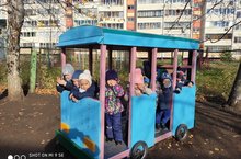 На участке второй младшей группы №9 появился автобус, сделанный руками родителей . Дети с удовольствием используют роли водителя и пассажиров, отправляются в путешествие на автобусе. Спасибо нашим родителям