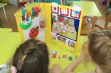 Воспитатели подготовительной группы №5 в своей работе с детьми используют интересное игровое пособие - лэпбук «Говорим по татарски». Этот Лэпбук, изготовленный руками педагогов, многофункционален. Он состоит из нескольких игр, которые несут определенную цель . Воспитанники в режимных моментах и в свободной игровой деятельности закрепляют лексический минимум на татарском языке.