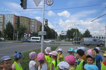 С целью профилактики детского дорожно-транспортного травматизма, а так же в преддверии дня рождения Cветофора воспитатели МБДОУ № 53 «Светофорик» организовали для детей подготовительной группы экскурсию к светофору, расположенному около детского сада. В ходе экскурсии дети в свою очередь продемонстрировали неплохие знания правил поведения пешеходов (переходить улицу только по пешеходному или подземному переходу, идти шагом, быть внимательными и взаимно вежливыми и т. д.) и дорожных знаков. Остановившись около светофора, ребятам рассказали о значениях сигналов, и как правильно переходить дорогу по «зебре». Будущим школьникам объяснили, что очень важно не только знать, но и выполнять правила дорожного движения, когда они самостоятельно будут ходить по улицам города.