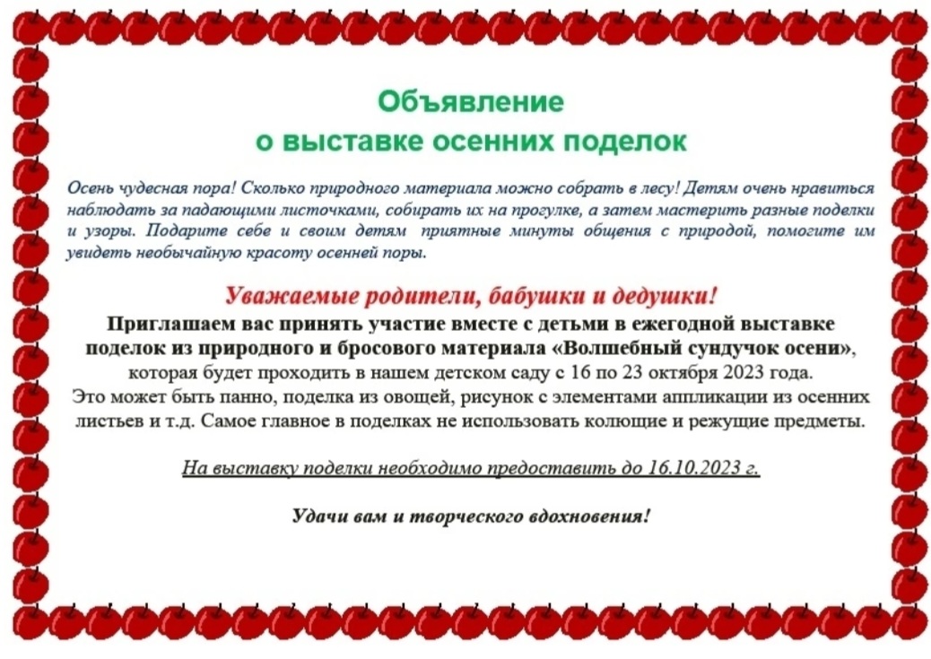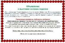 ОБЪЯВЛЕНИЕ о ВЫСТАВКЕ Осенних поделок.