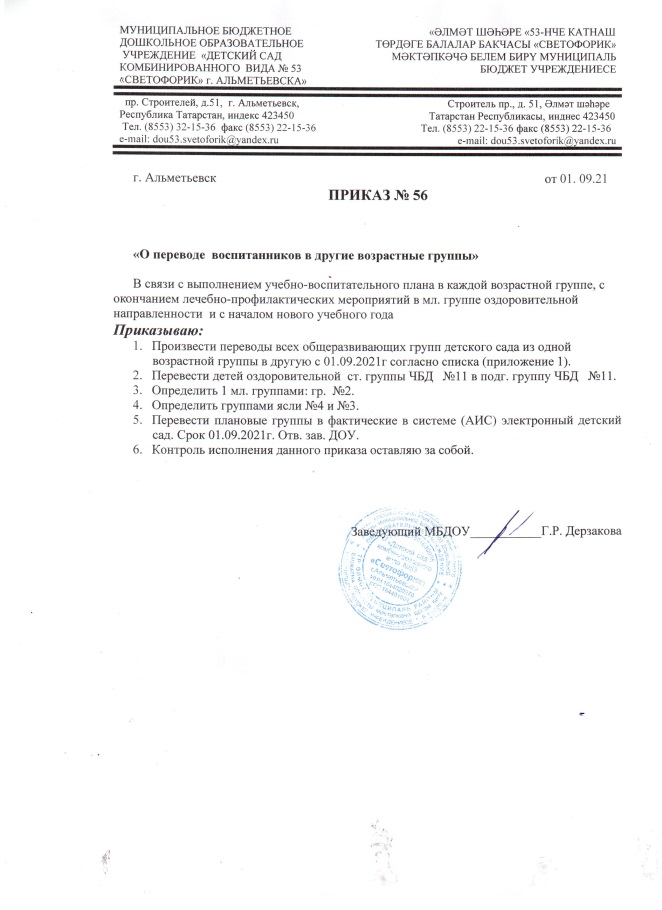 Приказ № 56 от 01.09.2021 г.