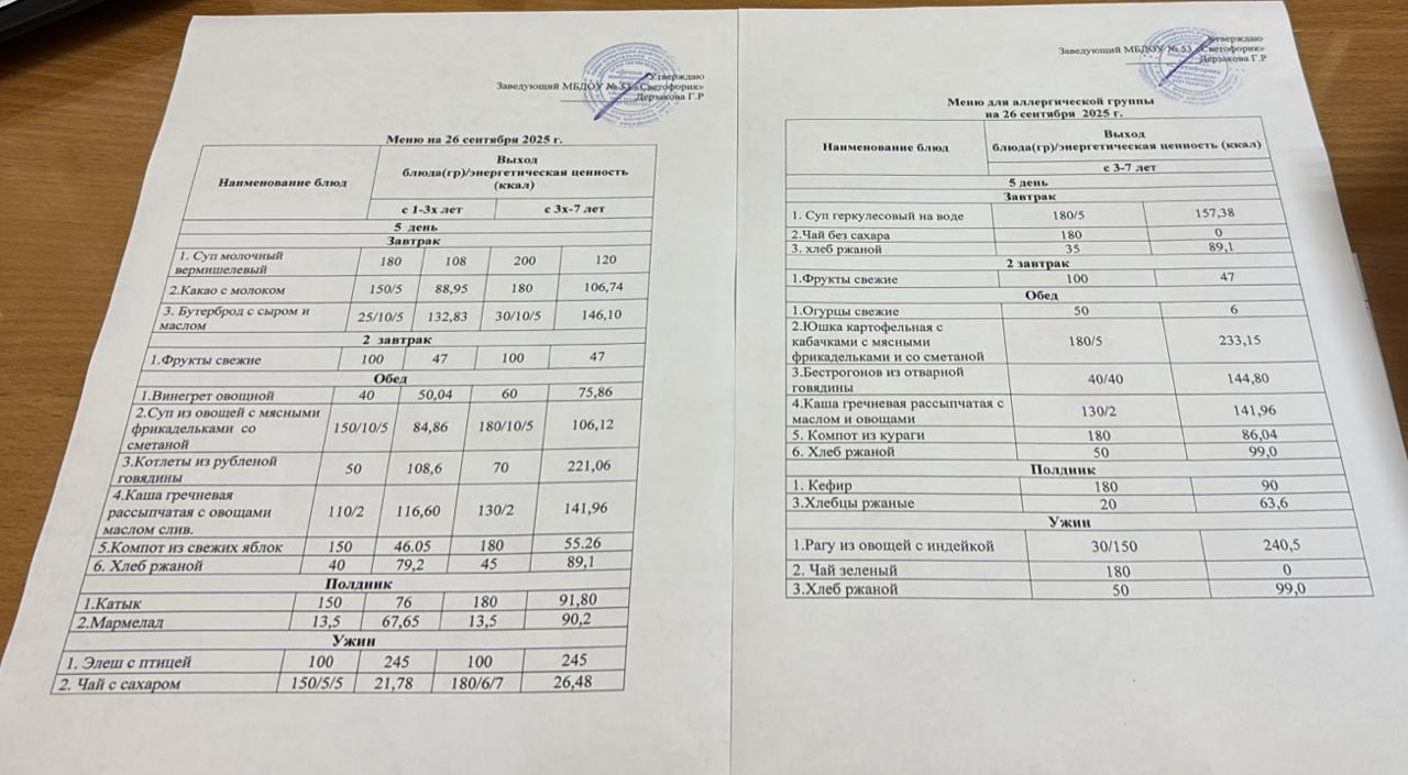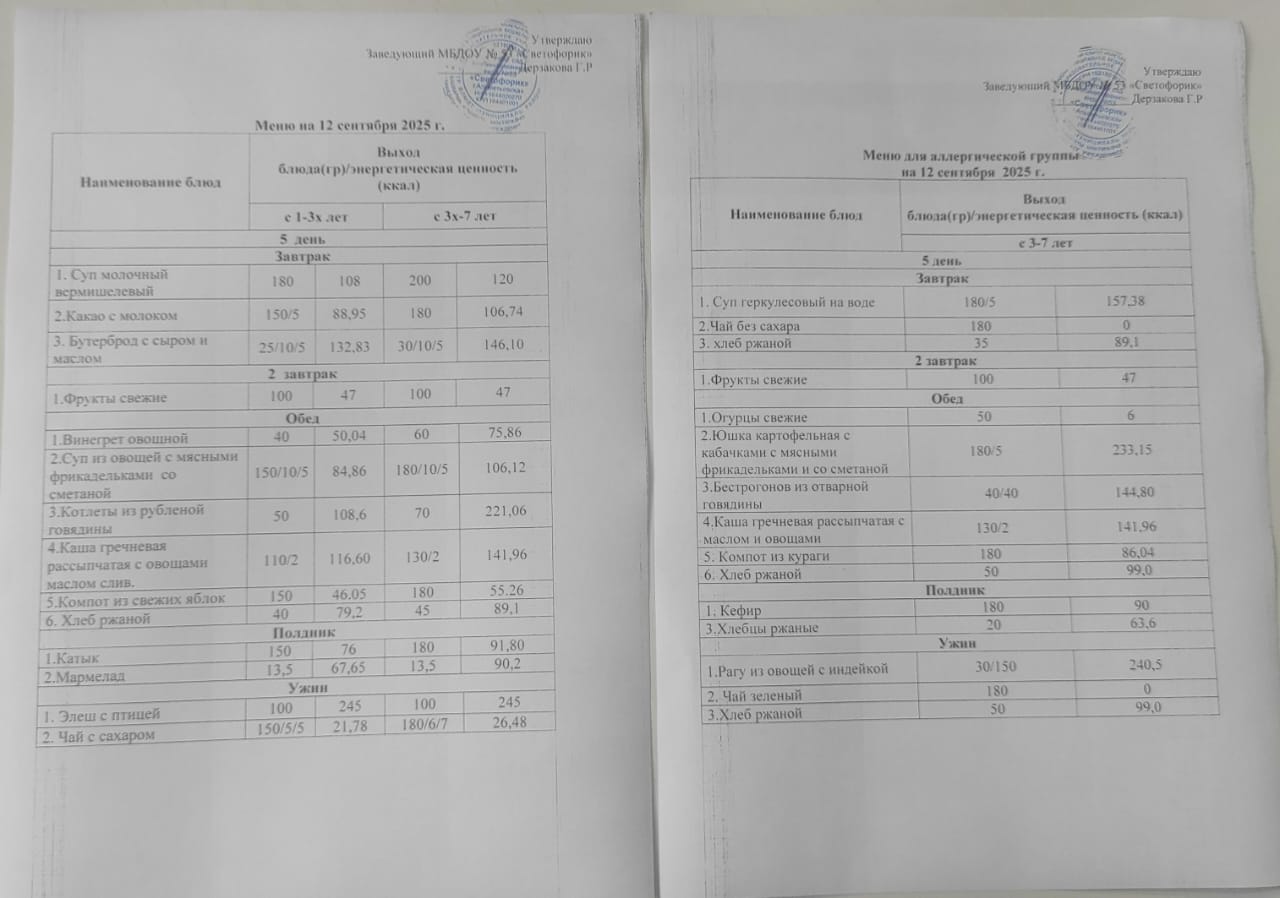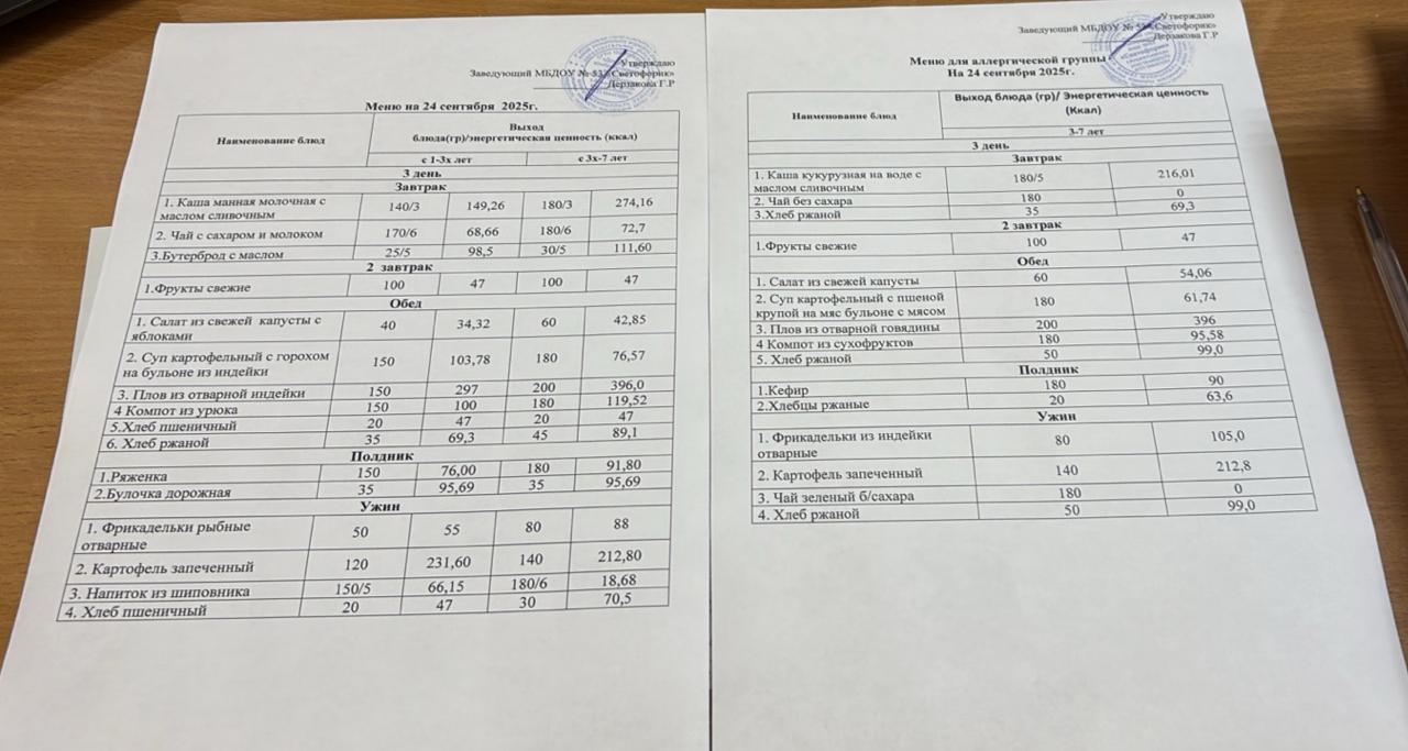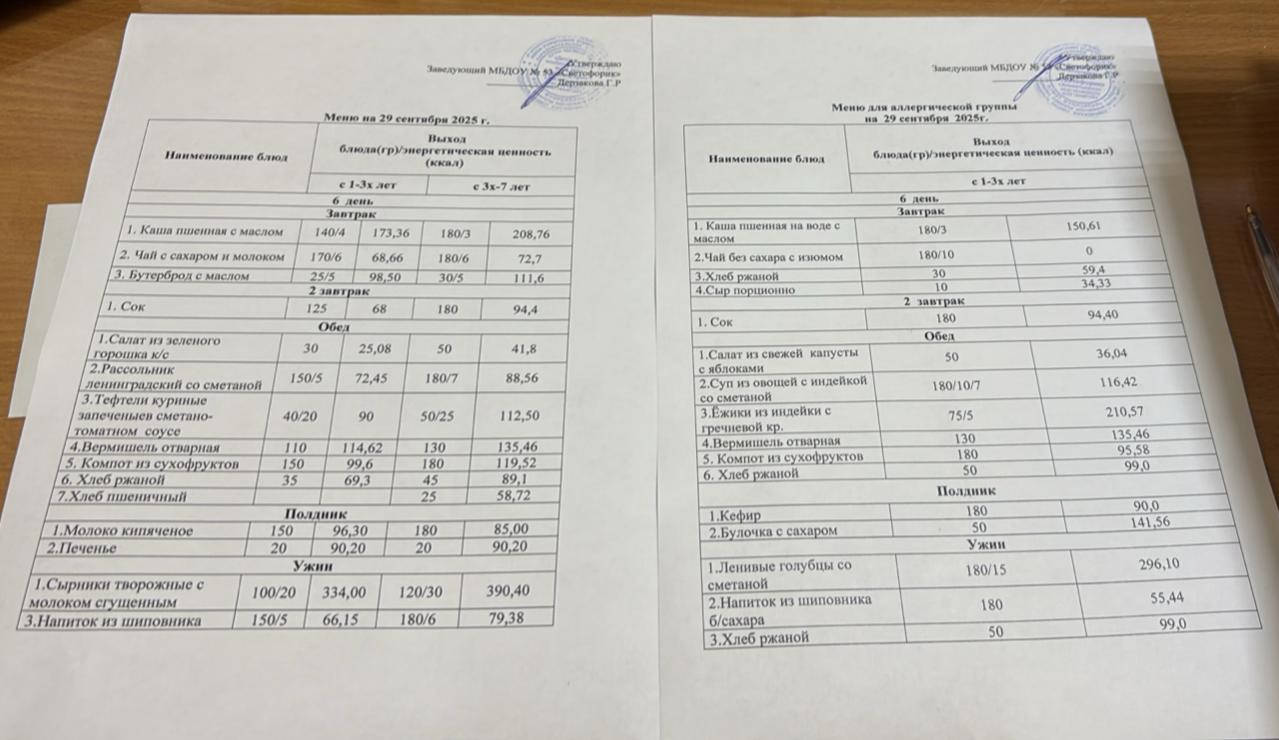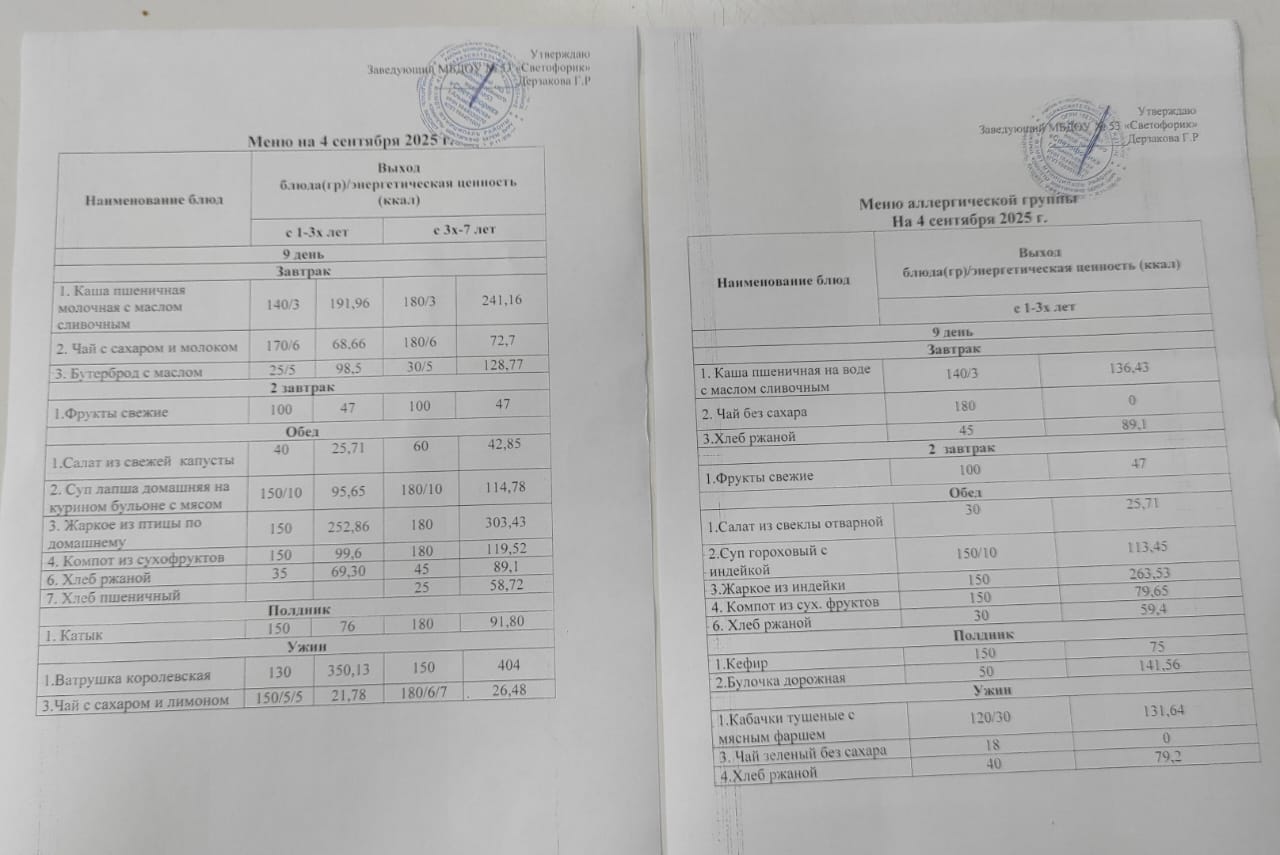 Ежедневное меню (СЕНТЯБРЬ 2025)