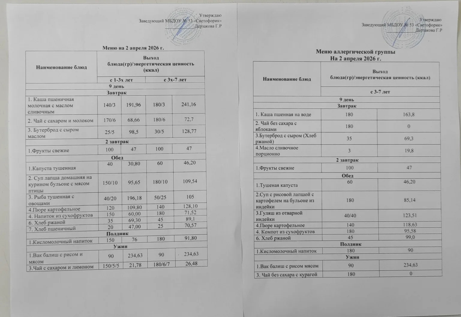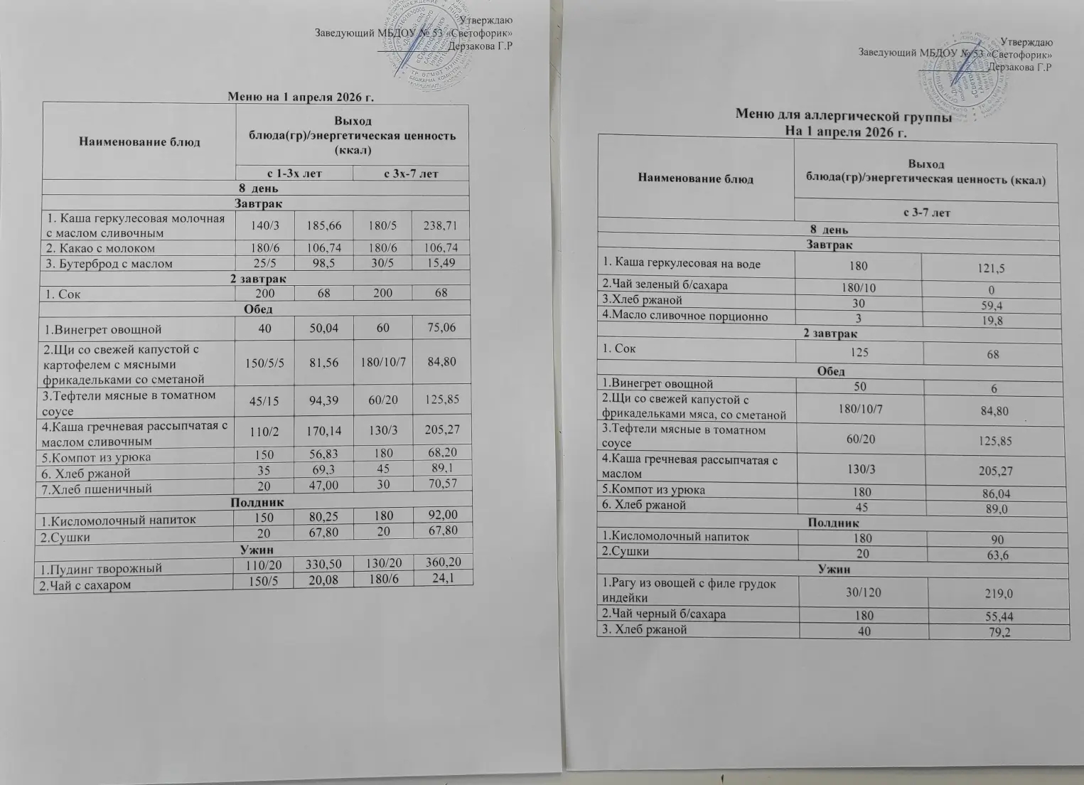Меню Апрель 2026