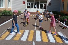 Дети подготовительной логопедической группы с удовольствием участвовали в играх, отвечали на вопросы, отгадывали загадки. Они учились правильно переходить дорогу по пешеходному переходу; учились правилам её перехода. Многие ребята вошли в роль водителей и ездили по проезжей части за рулём велосипеда, пропуская пешеходов и следуя указаниям регулировщика.