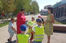 В ходе акции ребята поздравили пешеходов: мам, пап, бабушек и детей - с предстоящим праздником, вручили им тематические памятки и открытки с символом праздника - ромашкой. Также ребята вручили световозвращающие наклейки, которые участники дорожного движения приклеивали на одежду, сумки и на детские коляски.