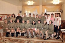 18.02.2015г. Коллектив МБДОУ «ЦРР – д/с № 57 «Соловушка» в рамках реализации педагогического проекта «Нам есть, у кого учиться - Родиной гордиться!», посвященный 70-й годовщине Победы в Великой Отечественной войне 1941-1945гг. организовал конкурс военно-патриотической постановки «Льётся в тесной печурке – огонь» среди педагогов ДОУ № 44, 52, 57, 65. Участники команд проявили свои знания в литературном, музыкальном, кинематографическом конкурсах, а таланты и мастерство показали при выполнении домашнего задания: представление литературно-музыкальной постановки. Члены жюри определили победителей, отметили дипломами. Финалом мероприятия стало фото на память.