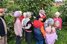 В старшей группе №4 "Лукоморье" прошла экскурсия в сад. В процессе экскурсии во фруктовый сад дети активно наблюдали за плодовыми деревьями, обратили внимание не только на цвет листьев, но и на запах, их форму, учились отличать фруктовые деревья, увидели, как они растут. Дошкольники вспомнили, что знают о фруктах и рассказали, какой фрукт для них самый вкусный, рассматривали луговые травы, закрепили знания о пользе витаминов для здоровья человека. А в минутку отдыха поиграли в игры "Компот", "Один-много".
